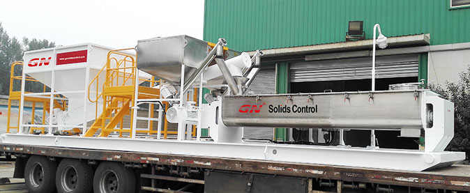 本套系統(tǒng)分為2個(gè)階段的固控處理和一套泥漿配置混合系統(tǒng)。鉆井泥漿初步分離采用的是冠能GNZS752型振動(dòng)篩,200GPM的處理能力、兩片篩網(wǎng)的構(gòu)造用來處理鉆井泥漿中的大顆粒的固體。振動(dòng)篩處理后的液體通過離心泵輸送給迷你型的沉降離心機(jī)GNLW223進(jìn)一步處理,可達(dá)3800RPM的轉(zhuǎn)速,分離的固體顆??蛇_(dá)到2個(gè)微米。