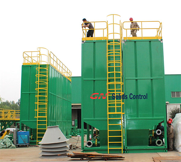 1)8套特殊定制的垂直泥漿罐作為儲(chǔ)漿罐,尺寸2200x2200x5800mm,8套泥漿罐可以裝入4具40英尺的集裝箱,總重量不超過5噸,滿足了直升機(jī)的吊裝要求。